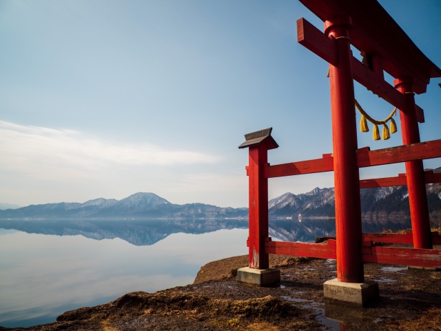 龍神を御祭神とする田沢湖の湖畔に鳥居を持つ御座石神社と瑠璃色の湖のコントラストは神秘的で、日々の喧騒を忘れるひと時が過ごせます。
