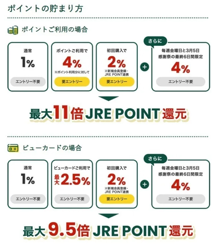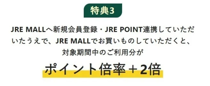 特典③ 新規会員登録&JRE POINT連携したうえで、お買い物いだくとポイント2倍