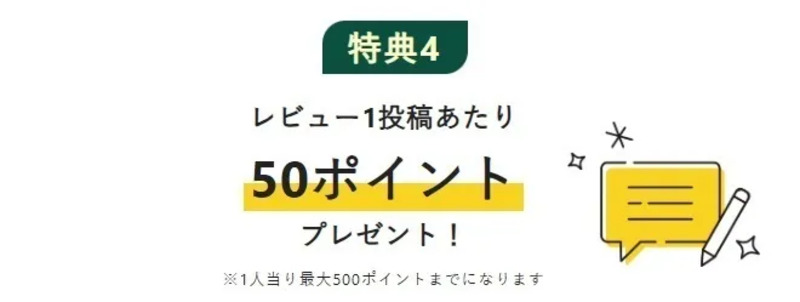 特典④ 購入後のレビュー投稿で50ポイントプレゼント!