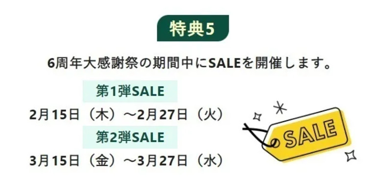 特典⑤ 大感謝祭SALEを開催!